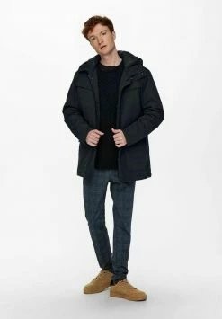 Only & Sons Herren Parka – Dark Navy | Warme Winterjacke mit Kapuze