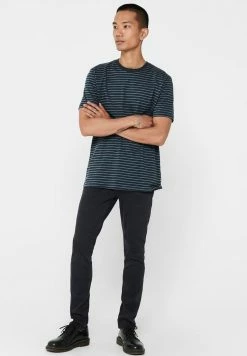 Only & Sons Herren SLIM FIT T-Shirt Basic – Dark Navy | Hochwertiges Baumwollshirt | Moderne Passform