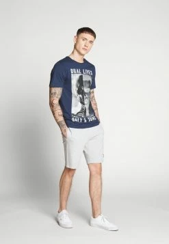 Only & Sons Herren ONSVIGGO LIFE – T-Shirt Print – Light Grey Melange | Modisches Basic-Shirt für Herren